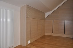 Realizace stěnových akustických obkladů 15 tříd gymnázia v Kodaňské ulici v Praze. Byl použit obklad z desek na bázi minerálních vláken, opatřený doplňkovým absorbentem.